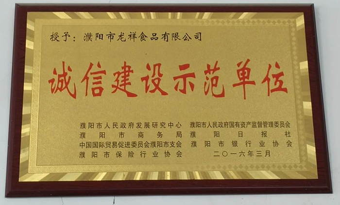 誠信建設示范單位